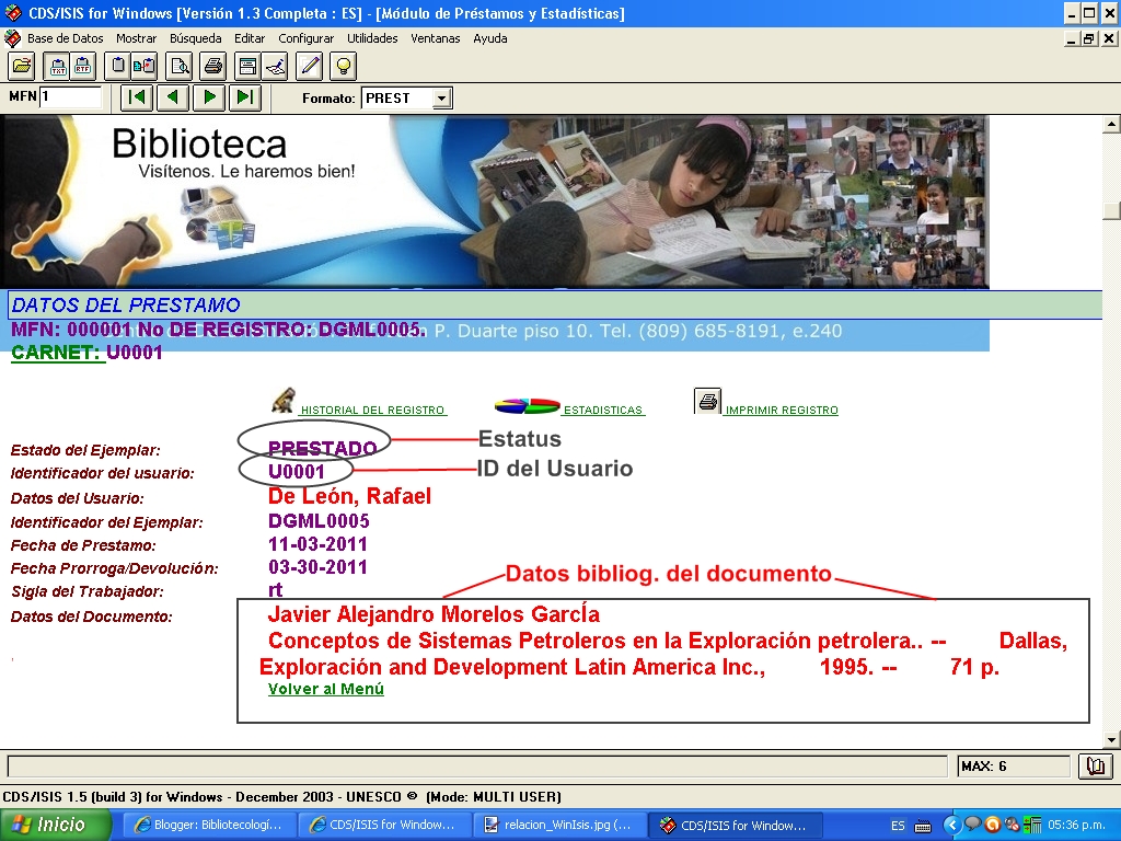 Winisis hoy CDS/ISIS para Windows fue presentado oficialmente por la UNESCO el 22 de octubre de 1998 en las VI Jornadas Nacionales de Usuarios de CDS/ISIS (Montevideo, Uruguay). Luego, la noticia fue anunciada el día 29 de octubre por Davide Storti, Programe Manager de la Oficina de Programas de la Información (PGI) de la UNESCO, en la lista de interés internacional sobre CDS/ISIS. La aparición de la versión oficial de Winisis (1.3) es un acontecimiento largamente esperado en el ámbito bibliotecológico, ya que introduce las ventajas del conocido MicroISIS en el entorno Windows y agrega varias nuevas. Posibilidades de WinISIS La versión de CDS/ISIS para Windows mantiene la compatibilidad a nivel de base de datos con la versión DOS. Entre otras ventajas, permite manejar las bases diseñadas con versiones anteriores, realizar consultas por medio de una interfaz gráfica, acceder a varias bases de datos simultáneamente y las restantes facilidades de uso que ofrece el entorno de trabajo de Windows. Otras características de Winisis son: posibilidad de trabajo multiplataforma (funciona en redes), manejo de multimedia (con infinidad de combinaciones, integrando imágenes, sonido y video), realización de aplicaciones para CDROM, etc. LA LISTA SIGUIENTE DESCRIBE BREVEMENTE LAS POSIBILIDADES DE WINISIS: Lenguaje de formateo: los nuevos comandos permiten el manejo de distintos colores, tipos de letras, sangría, justificación del texto, sonidos, imágenes y videos, hipertextos, despliegue de pantallas alternativas y un amplio abanico de manejo de imágenes (pueden colocarse imágenes decorativas, como fondo de la pantalla del formato, como iconos para desplegar un texto, hipertexto o sonido, etc.). Comandos hipertextuales: permiten enlaces a otros registros, a otras bases (por ejemplo, al clickear sobre un autor o un descriptor se abre otra base con datos biográficos del autor o se realiza una búsqueda de otras obras del autor o tema), enlaces a Internet, etc. Búsquedas de datos: permite usar varios archivos invertidos de la misma base (de este modo permite buscar en el diccionario de autores, o en el de temas, o en palabras del resumen). Ventanas «hijas» de un registro o base: el comando Child y sus variantes permiten desplegar textos y/o imágenes, abrir otra base (con innumerables aplicaciones, posibilita desplegar textos de ayuda o acceder a otra base con información relacionada). Consultas a bases: permite abrir varias bases a la vez y también establecer relaciones entre ellas por medio de datos compartimentados (al consultar una base bibliográfica o editar registros, puede abrirse simultáneamente una base de tesauro y ver las relaciones de los descriptores). Impresión: proporciona varias características novedosas con respecto a títulos, encabezados y pies de página, manejo de márgenes, colores, bordes y sombreados. Junto a las nuevas características gráficas de los formatos, una de las bondades más llamativas del programa. Edición de registros: es posible ver y editar varios registros (gracias a las opciones de cambios globales del menú «Utilitarios»). Control de autoridades: gracias a las tablas de validación, se simplifica el arduo proceso de la normalización de autores y descriptores. Al ingresar un dato se despliega un texto de control con múltiples opciones para elegir, de este modo se facilita el ingreso del nombre correcto de un autor o se evita la digitación de un descriptor por medio de un simple clic del mouse. Creación de bases: Winisis posee un Wizard (Asistente) para la creación de bases, que guía al usuario brindando asistencia en la creación y diseño de la estructura de la base, las hojas de entrada, la tabla de selección de campos y los formatos. Personalización de menús: puede seleccionarse el idioma de los menús y posibilita dos opciones, acceso total o sólo de búsqueda.